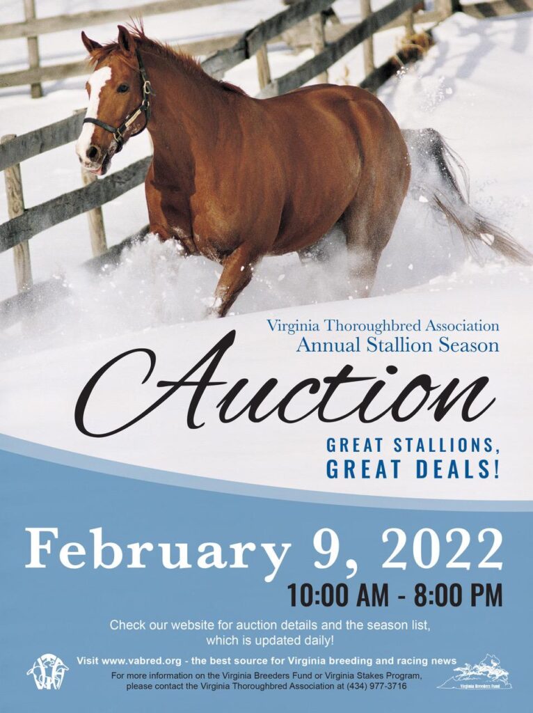 2022 Virginia Stallion Season Auction – Open Bidding, February 9 – TO BID CALL (434) 977-3716