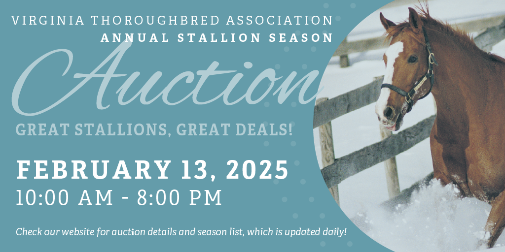 Please remember to click here for complete information regarding the Virginia Thoroughbred Association’s Stallion Season Auction Conditions.